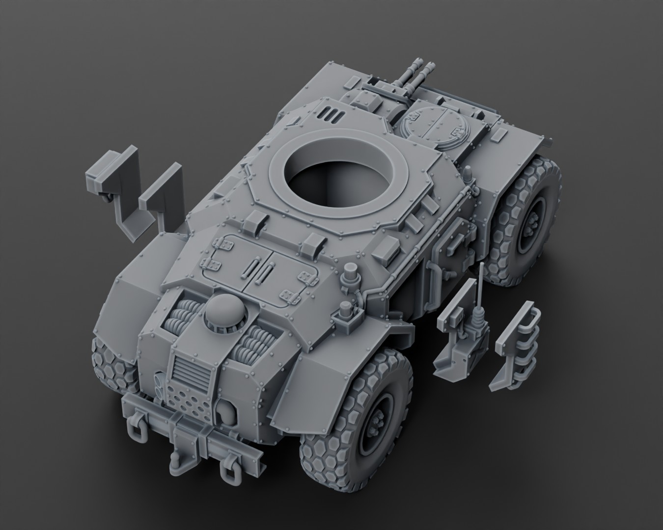 It is recommended to remove the support structure (starting from the top of the miniature) with a shart pointy side cutter (we recommend: Tamiya side cutter).